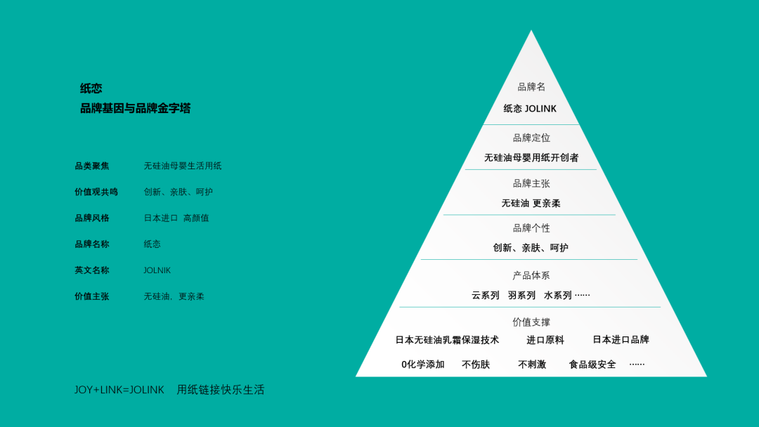 至此,我们建立了以“无硅油生活用纸”为核心展开的品牌策略规划。